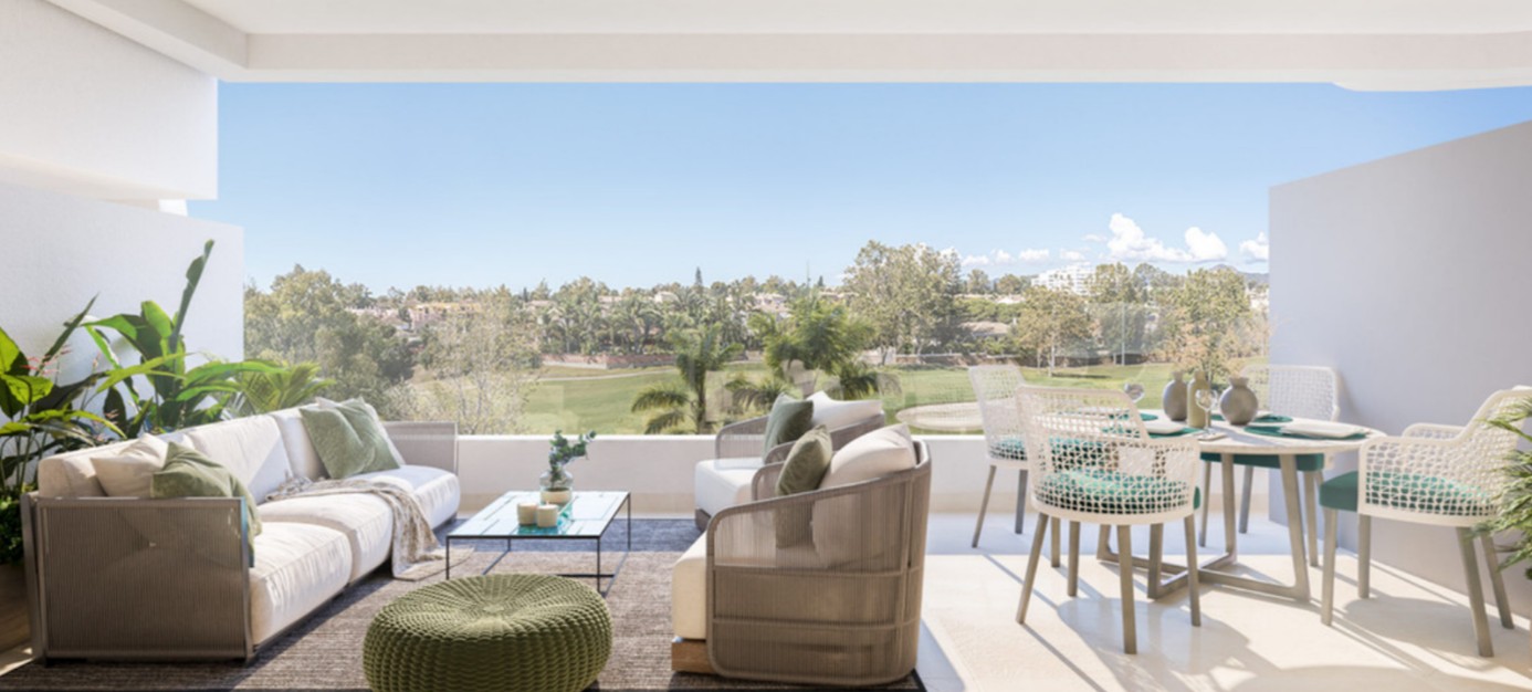Alle appartementen hebben grote terrassen met glazen balkonwanden, zodat u optimaal kunt genieten van het fantastische uitzicht op de golfbaan. De appartementen op de begane grond hebben ook privétuinen met uitzicht op het zwembad, de resorttuinen en de golfbaan die het complex omringt. .