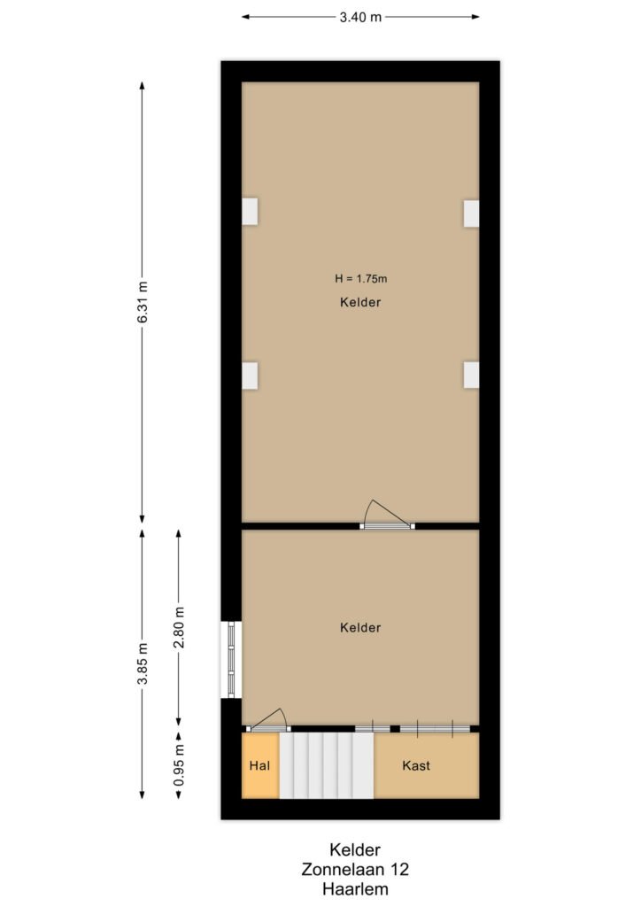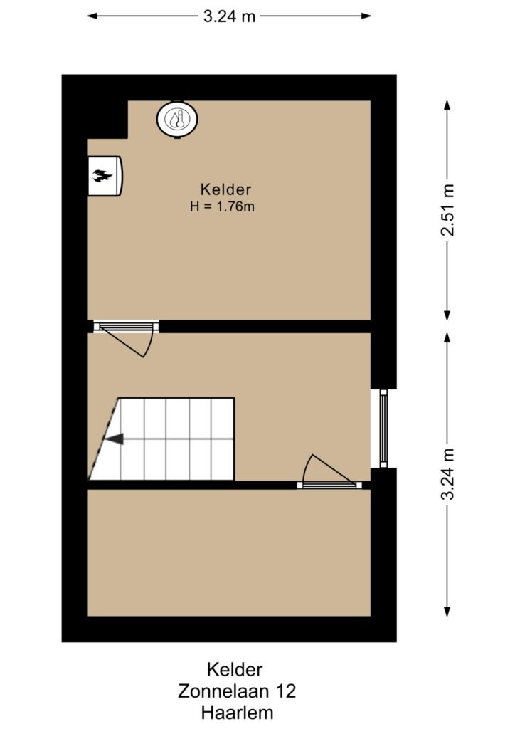Woonkeuken, bijkeuken en vanuit de gang toegang tot de kelder die verdeeld is in twee ruimtes, waarvan één met opstelling cv.