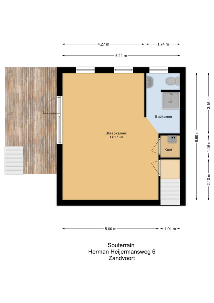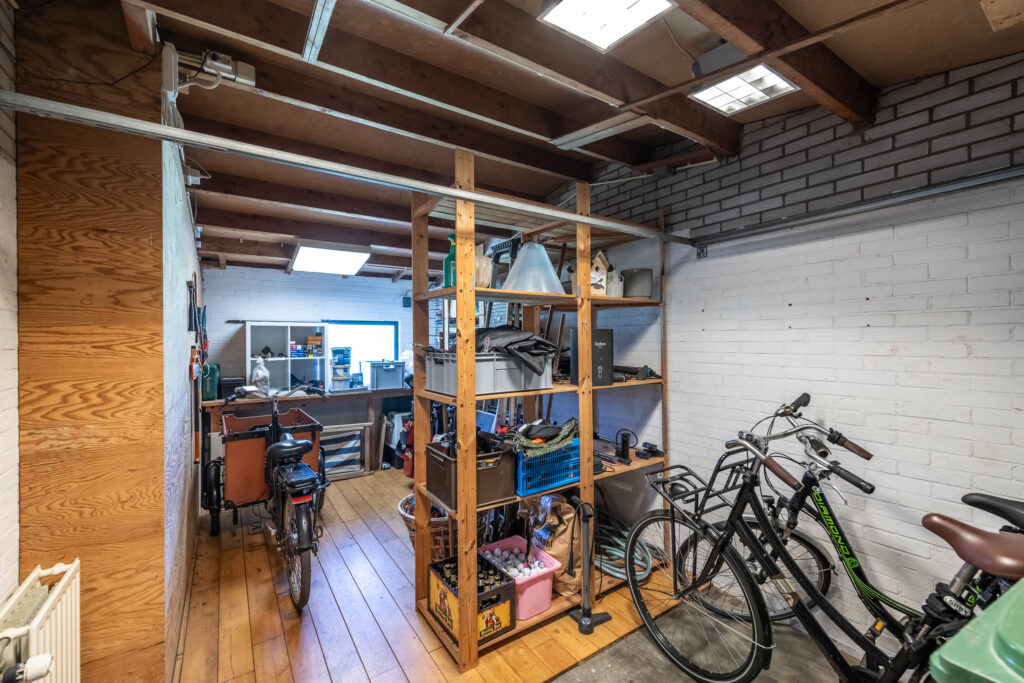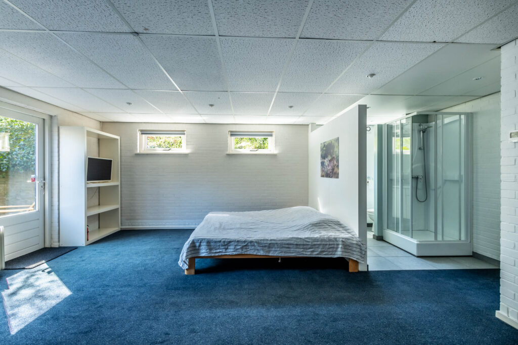Grote speel/logeerkamer/studio met bergruimte en een badkamer met douche, wc en een wastafel. Dmv een deur is er toegang tot een terras. Dit kan tevens worden gebruikt als separate ingang tot deze kamer/studio. Hier bevindt zich ook een kleine ruimte voor de cv ketel.